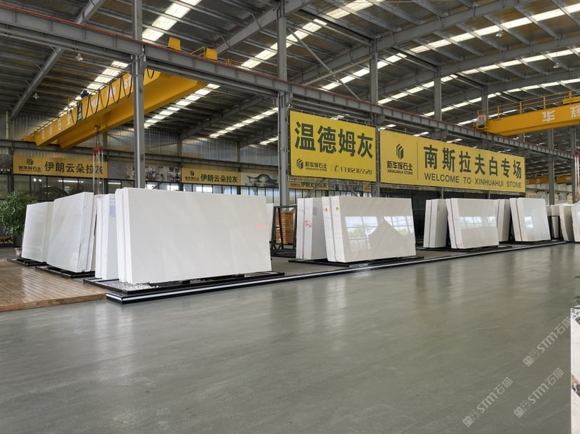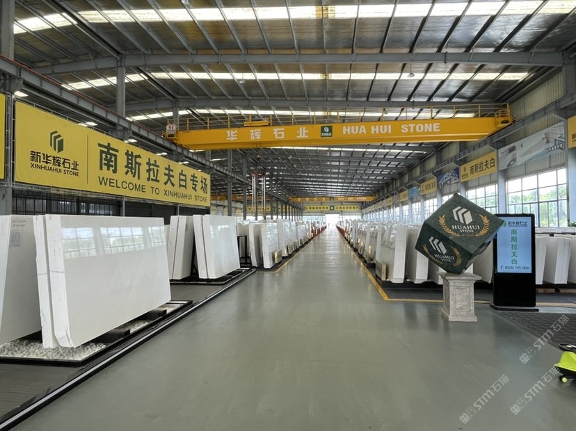新华辉南通石业位于江苏南通如皋港区东升南通国际石材产业城,生产基地占地40亩,引进先进的大理石排锯,全自动大板磨机生产线,配有多台靖祐红外线切机、全自动线条机等完善的一次、二次加工设备,年加工大理石大板百万平方米。目前已成为华辉石业集团华东生产基地,覆盖全国市场,进一步助力华辉石业打造成全国石材业知名品牌。新华辉南通石业为南斯拉夫白、伊朗云朵拉灰、西班牙米黄优质供应商,集聚众多海外优质矿山资源,以规模化批量生产实现优质优价,让利给广大采购商和消费者。