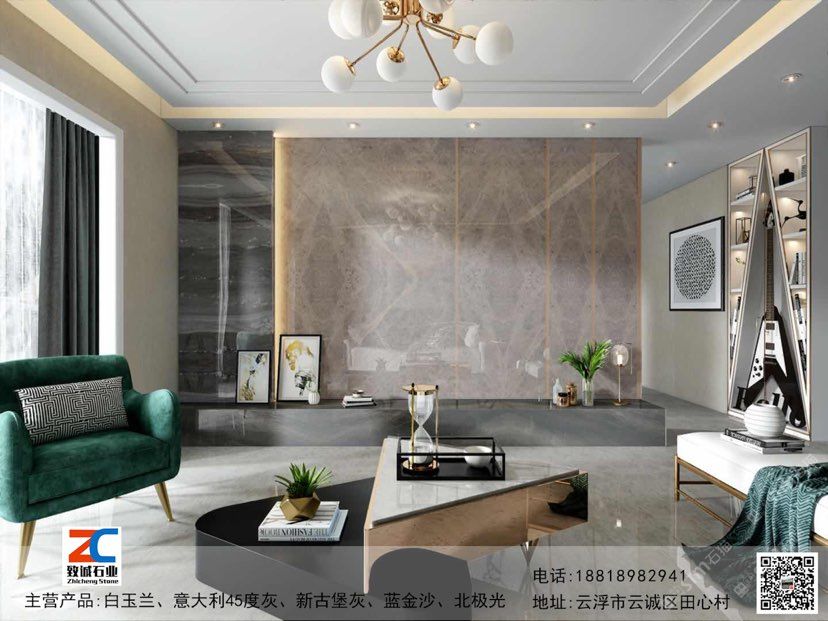 ? ?本公司拥有多坐矿山,年产大理石达20万平方米以上。丰富的矿山资源,先进的机械设备、多年度管理经验,生产的各种石材产品是酒店、宾馆、别墅、家居等等度建筑装饰石材。