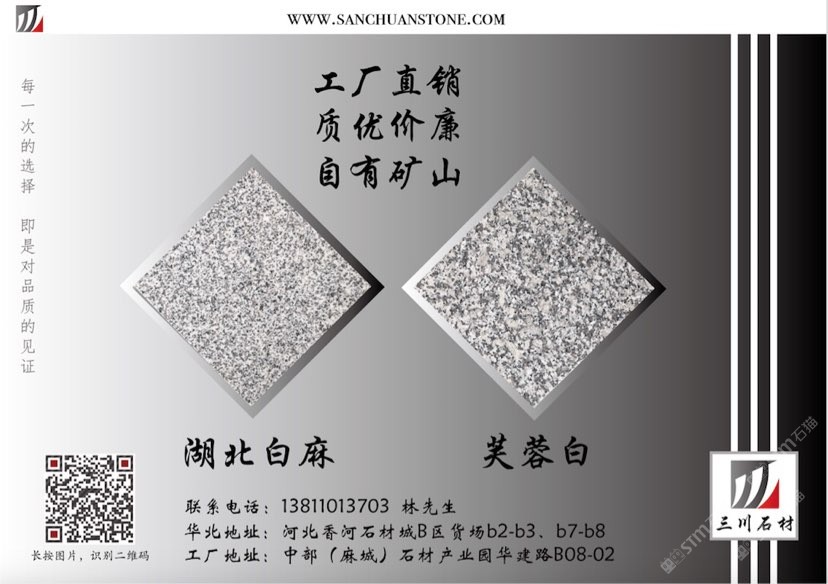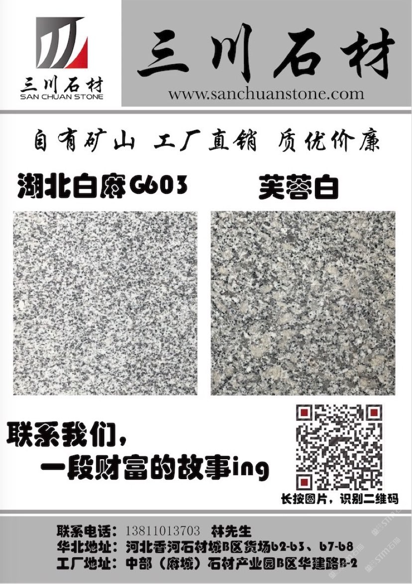 三川石材有限公司是一家专注于国内石矿开采、加工及贸易的专业化公司,是湖北省麻城市知名石材企业之一。公司的创始人团队从业始于1996年初,1998年在福建省罗源县投资建厂,经过近三十多年的发展,2013年将公司总部设在中部(麻城)石材循环经济产业园,下设河北、湖北、重庆、江西、浙江等几大生产加工基地及销售网点。