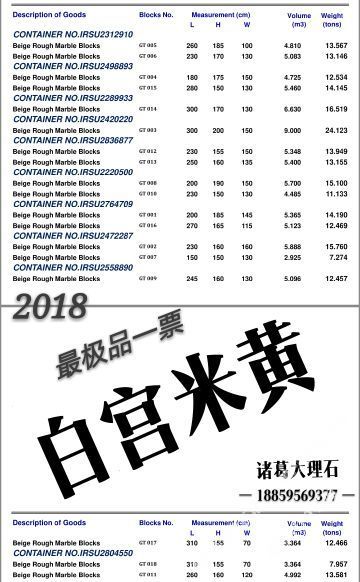 主营:白宫米黄