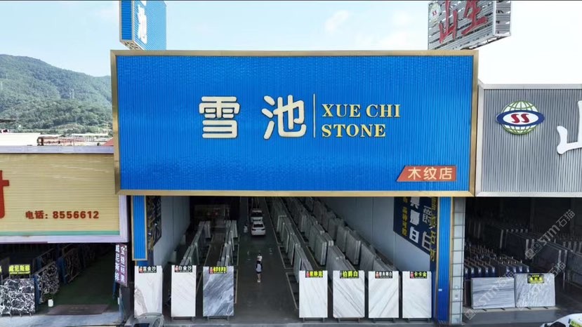 广东云浮云城区G324(福昆线)国道下白村路段的雪池石材木纹店