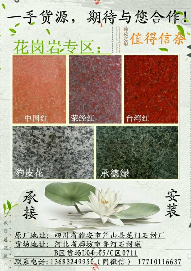 地址: 中国河北廊坊香河市安平镇香河石材城B区花岗岩货场L04-05~顺着一排绿树走到头就是