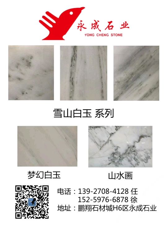 公司主营:雪山白玉,梦幻白玉,仙女散花,山水画等,以及各种花岗岩