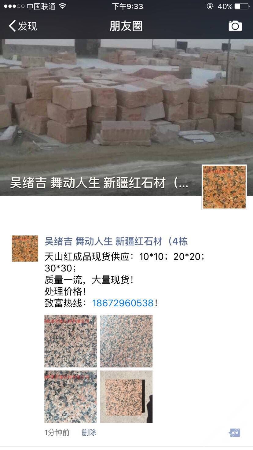 鄯善县至德石业有限公司位于美丽的葡萄之乡~新疆吐鲁番鄯善县鄯善石材工业园。本公司主要经营天山红,新疆红,鄯善红,新疆黄,雪莲花,灰麻等各类新疆石种,拥有先进的生产设备, 雄厚的技术力量,是一家集矿山开采,石材加工,销售于一体的多年老品牌石材公司。本公司还设石材销售点于各个大型建材市场,广东云浮市思劳,广东云浮市珠洞,福建省水头镇闽南建材市场。承诺满足不同地区的采购商多种需求。我们期待您的来电,竭诚欢迎新老客户共创双赢。