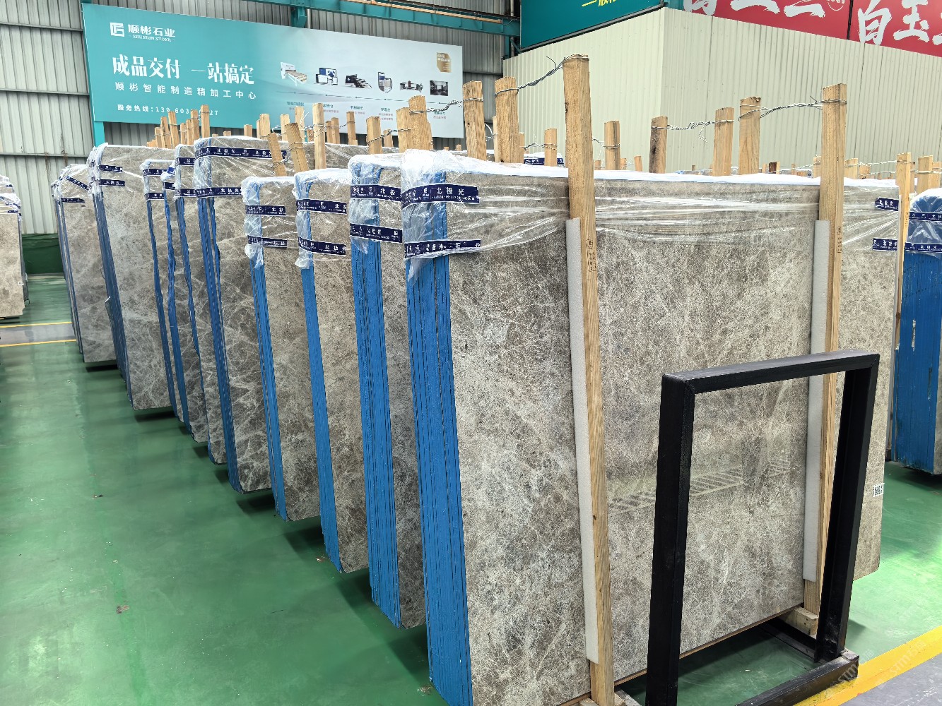 福建省南安市顺彬石业有限公司,总部位于中国福建南安市水头镇,其区位独特,地处厦、泉、漳闽南“金三角”中心区域,与厦门经济特区接壤,有泉州的“南大门”之称。这里交通便捷,福厦高速公路贯穿全境,距离厦门机场和港口仅几十公里;国道324线及福厦漳高速公路贯穿全境,码头直通外洋。本公司注册资本1000万元,拥有员工100余人,历经10多年快速稳健的发展,现已成为集石材深加工产业、石材工程装饰等为一体的石材企业。公司在南安水头镇,建立了1个厂房建筑面积约12000平方米数字化石材加工厂,引进目前国际先进的数字化、自动化的大理石生产设备,配套数字化5轴智能红外线,高清扫描仪,5轴水刀机,雕刻机,全自动仿形机,全自动大理石拉边机,大理石倒边机,大理石磨光机等机器,形成了年产20万平方米工程板、加工能力。产品结构配套齐全足以为国内地产精装工程提供高标准、高质量产品。\\\\\\\\\\\\\\\\\\\