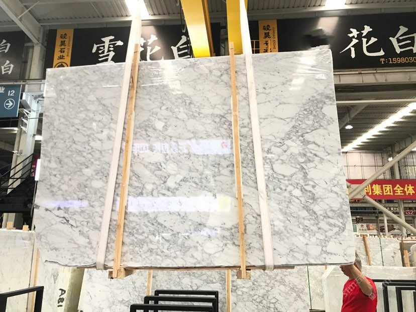 大量精品中花白、卡拉拉白、雪花白大板、荒料
