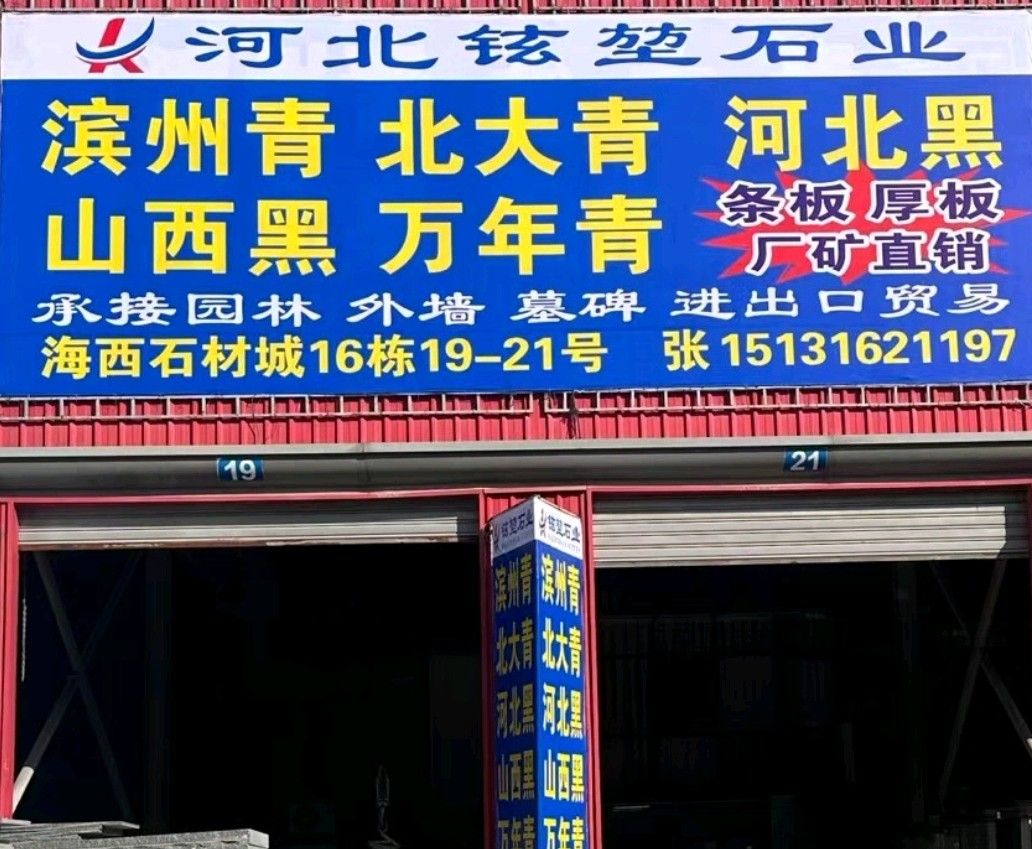 专业:滨州青.北大青.山西黑 .河北黑. 易县黑 . 森林绿, 加州红龙 ,贵妃红等河北矿产品!