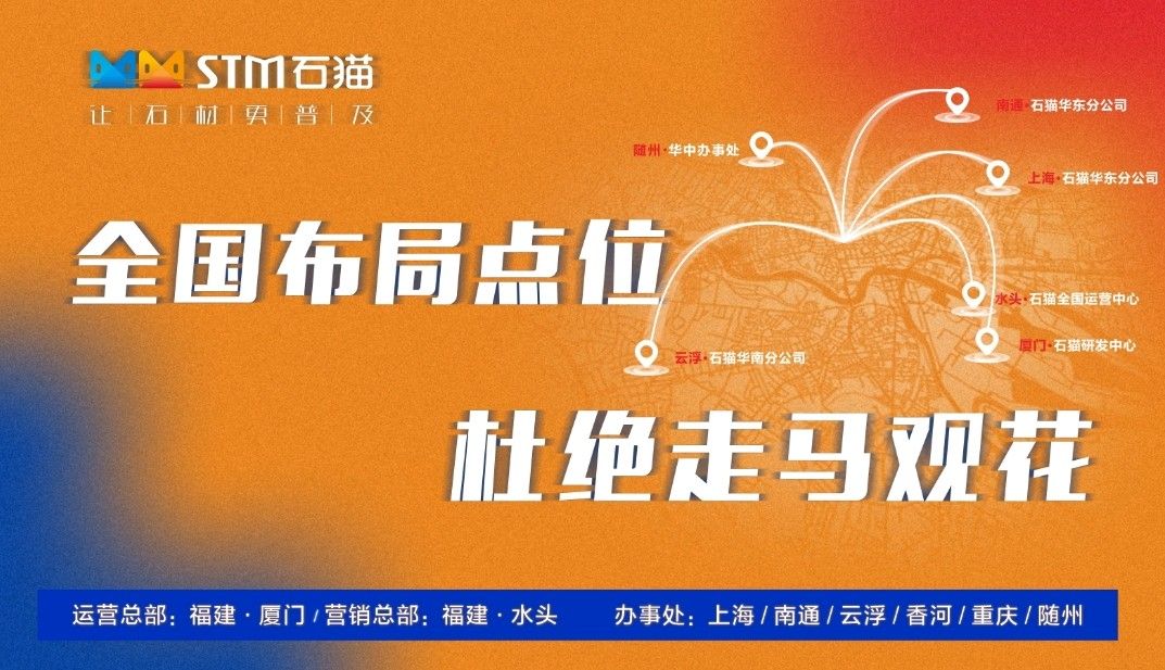 厦门石猫科技有限公司驻华南分公司,其市场主要覆盖广东、广西、云南、海南四大省。华南分公司致力于为石材行业服务,打造行业典范,目前已与当地多家石材行业先锋企业达成合作共识。