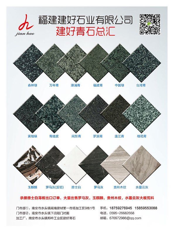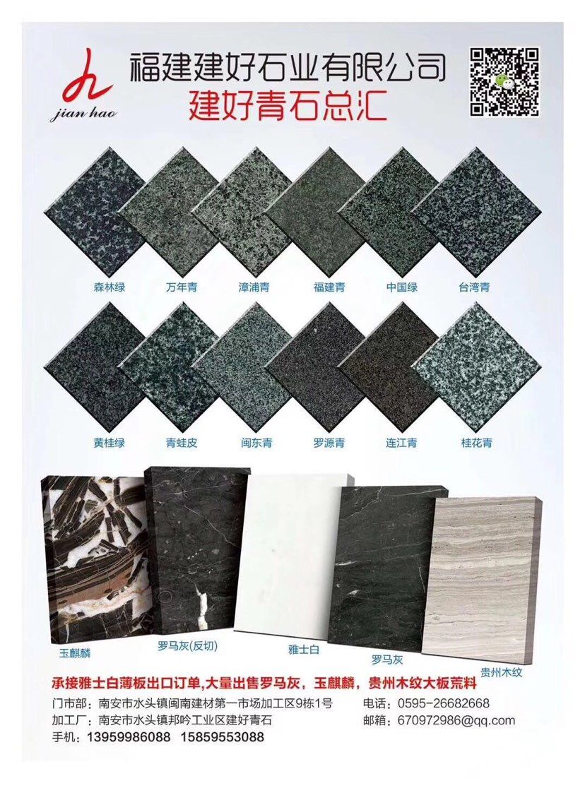 言升(建好)石业专业青石供应商,自有矿山、实力工厂、水头门市部一体;主营:青石、福建青、万年青、漳浦青、广西青、万源青、四川青、森林绿、中国绿、古典绿、辉绿岩、桂林青,台湾青等产品;园林景观,石材背景墙,大板,荒料现货供应15375868088 13959986088;欢迎您来电沟通洽谈业务!