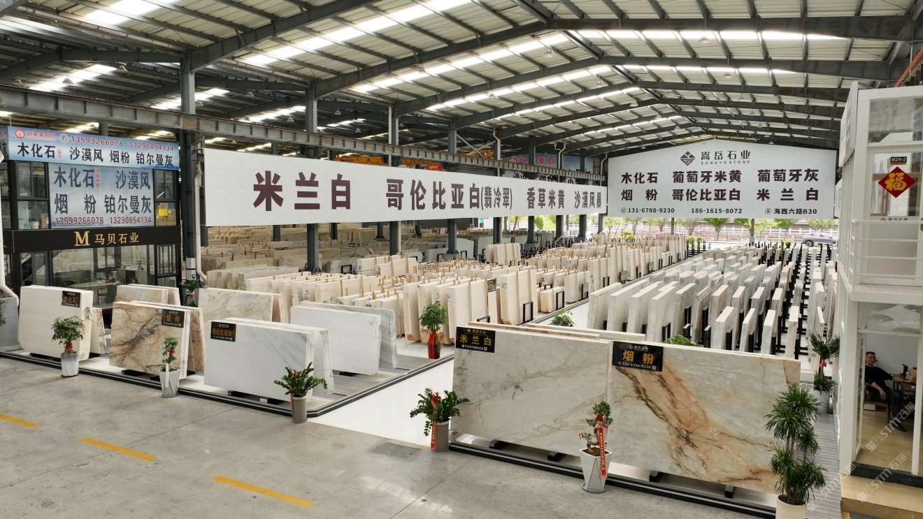 主营:木化石、葡萄牙米黄 葡萄牙灰 烟粉 哥伦比亚白 米兰白