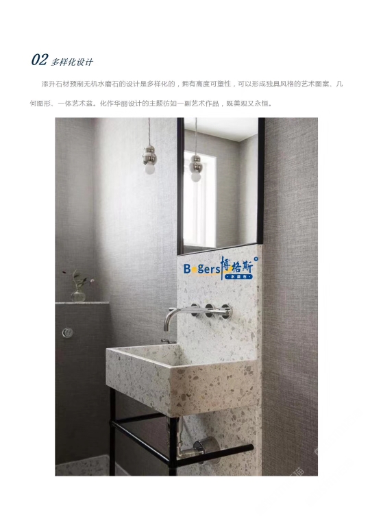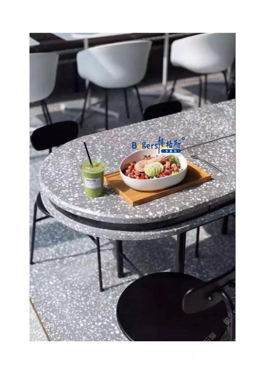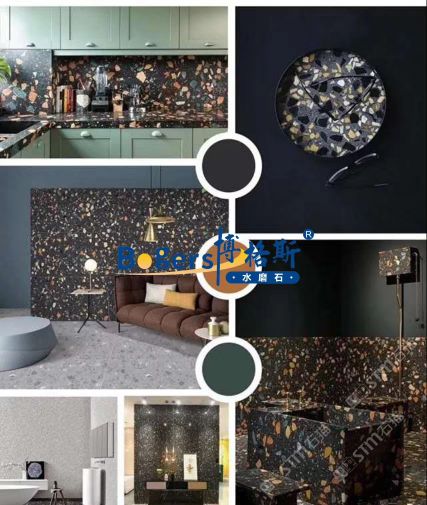随着工艺水平和材料品质的巨大突破,新型预制无机水磨石采用环保型无机粘剂,不含树脂胶水等,通过高频高压抽真空震动压制而成,硬度更高更耐磨,施工更灵活方便。凭借其时髦大气的设计呈现出一种慢慢的感