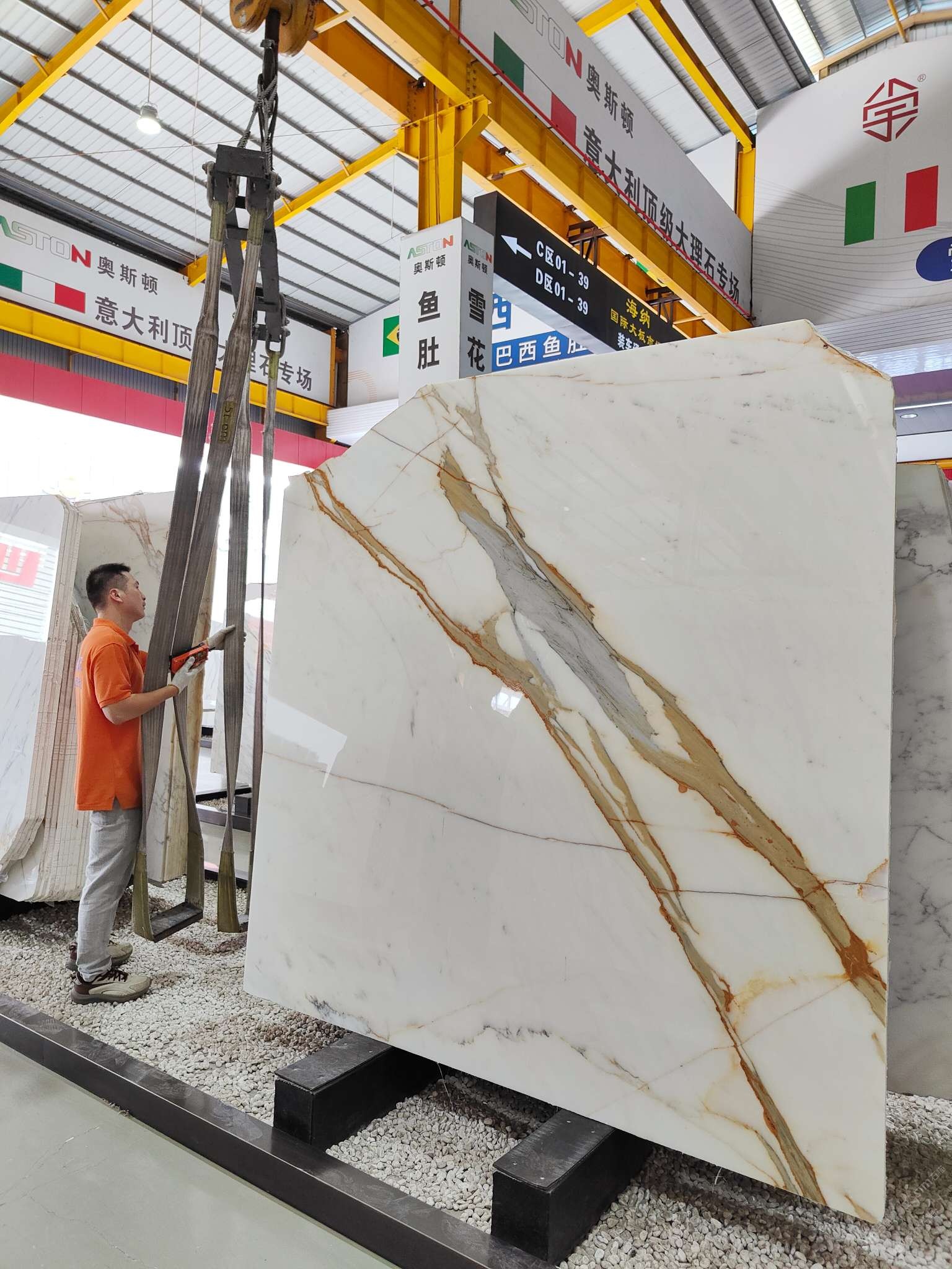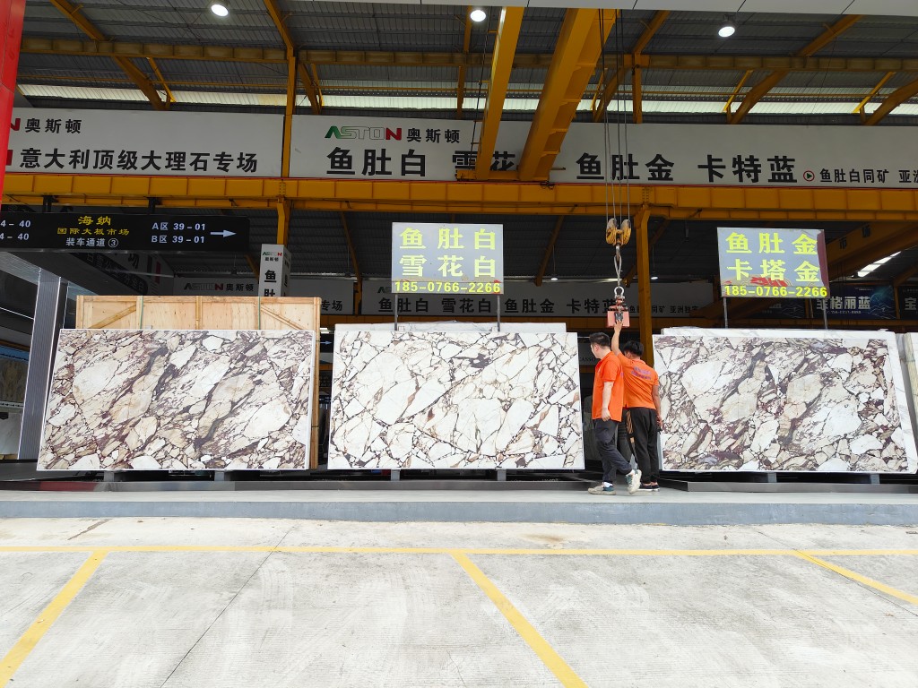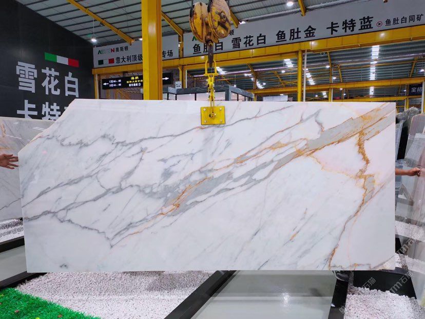 奥斯顿石材有限公司ASTON MARBLE WORKS CO.,LTD.专注:意大利正矿Calacatta卡拉卡塔系列鱼肚金、鱼肚白、雪花白、卡特蓝(亚洲区总代理)。我们的优势:自营意大利&国内公司及矿山荒料堆场、国内板仓卖场、工程配套、家居工厂、展厅,从矿山源头至用户,全系一站式专业供应链。