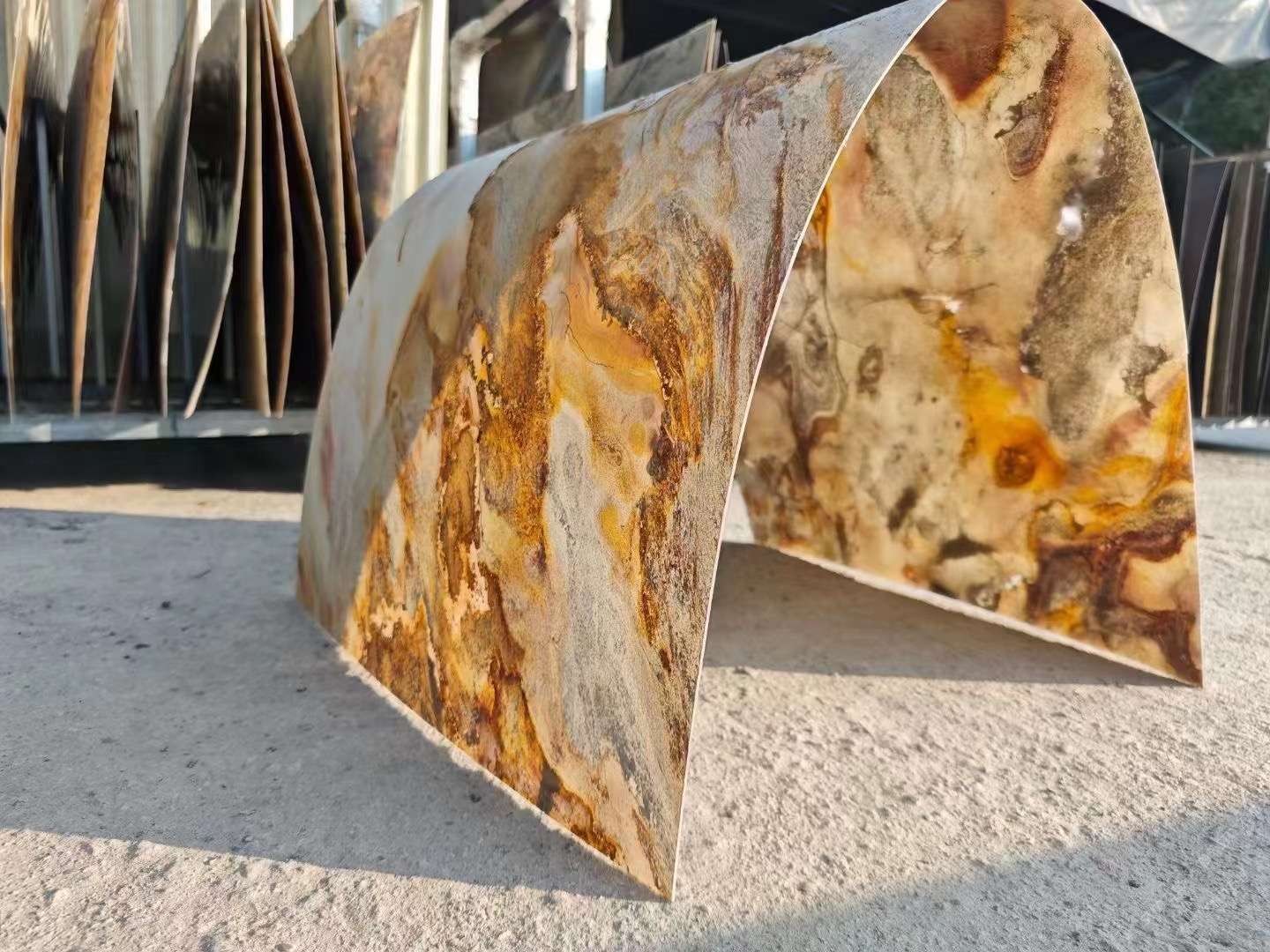 加工厂:1MM超薄板、5MM薄板、石材蜂窝板、工程板。致力于各类玉石,大理石,洞石,莱姆石,花岗岩的复合板,石材蜂窝板,透光板,超薄板,陶瓷复合板等。