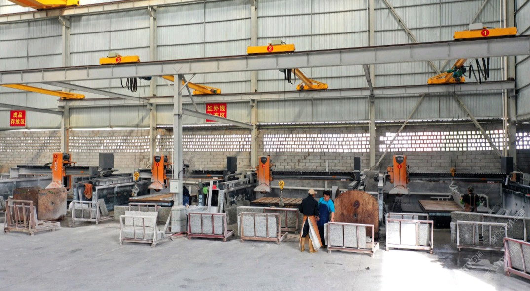 祥佑石业是原永艺石业的二厂,位于交通便捷的福建泉州南安市石井镇促进返头工业区。新厂房占地约6000平方米,拥有6台龙门大切,及劈面机,板底劈面机,翻面机。24头全自动磨机,全自动磨边机和数台红外线等全套设备。全新的机台设备让每一位顾客感受到的高科技产品带来的品质。创新设备的投入,让材料损耗降到,降低成本,节能环保,为顾客带来更大的价值空间。