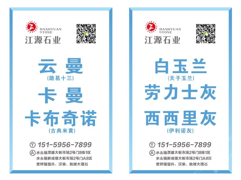 销售点:澳盛大板市场2号门8栋1-4区,新成信2号门A8-10区,官桥恒升、胜牌大理石厂