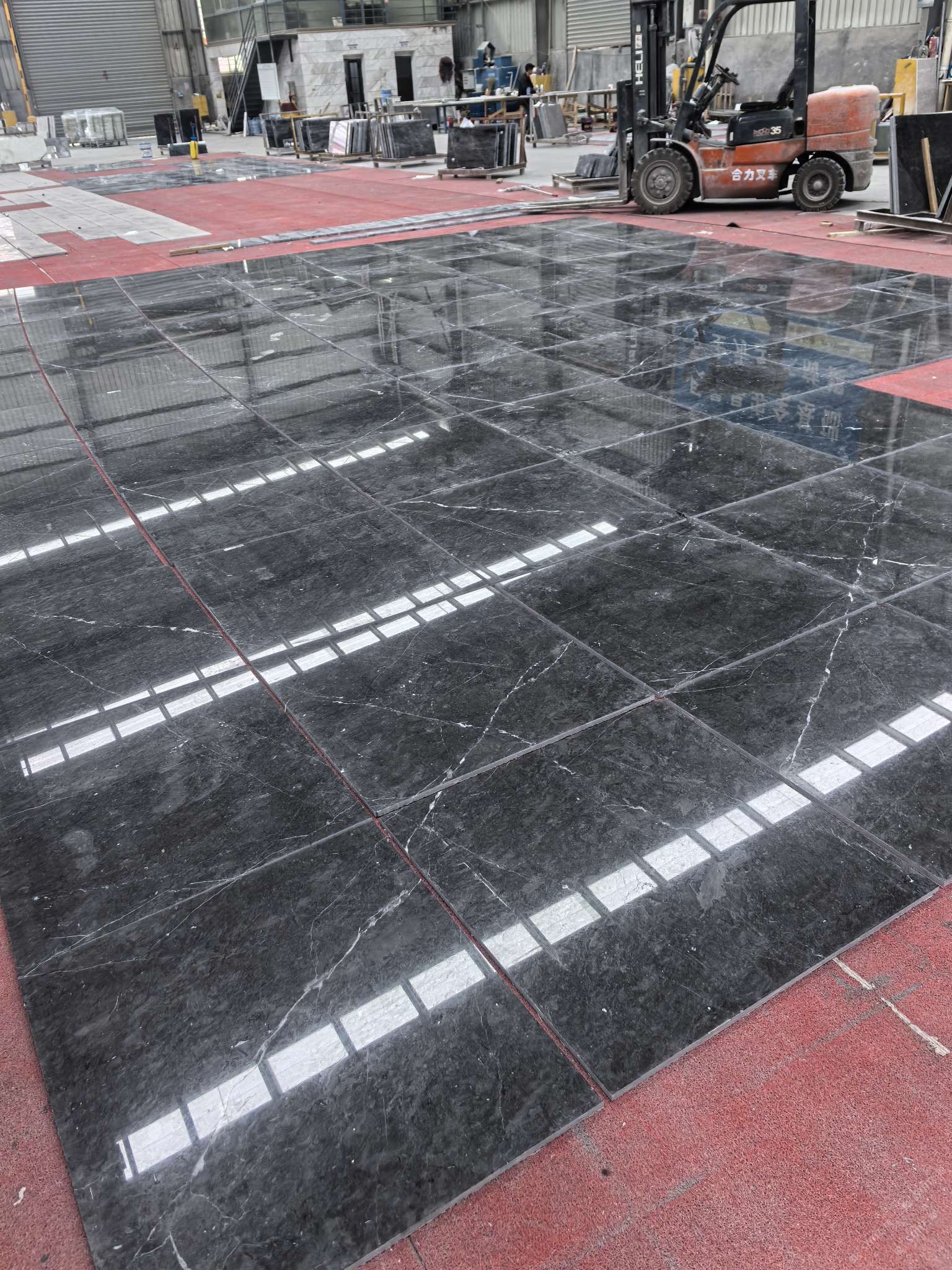 工厂位于在南安水头镇,占地3万平方米,工业厂房建筑面积2万平方米。分设拉锯、补胶、磨抛、介板、板材打磨、工艺、 工艺打磨等车间,拥有先进的石材加工设备80多台(套),每年可生产大理石大板60万平方米、工程板15万平方米、弧板3000平方米及各类花线5000米。