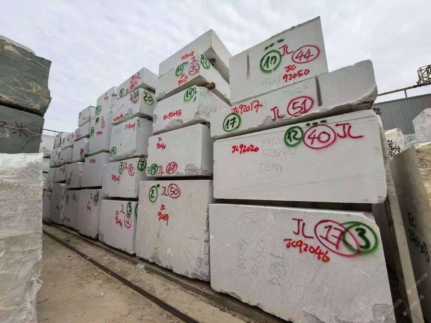 大花白、鱼肚金、宝格丽、卡地亚白,细纹雪花白(大量荒料批发)、