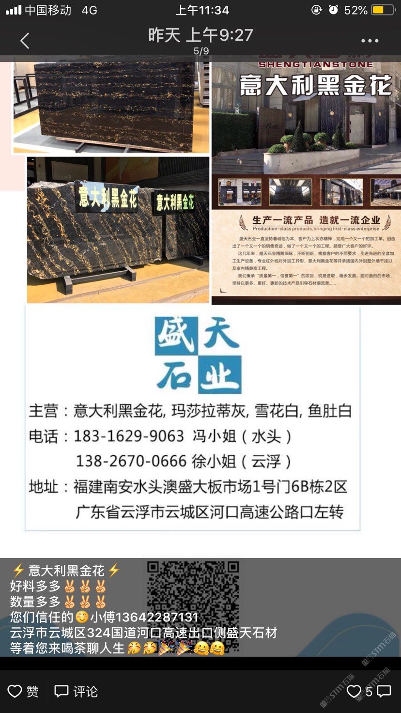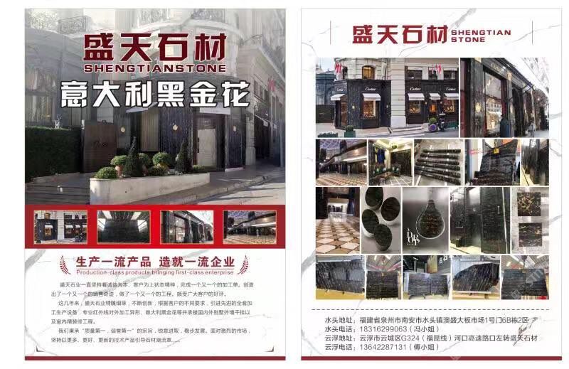 盛天石业有限公司,成立于2006年,位于号称百年中国石材基地中心的广东省云浮市。本公司集生产,设计工程于一体,以专业优秀的人才。管理和生产实施严格质量要求,为广大客户提供质的商品平台。公司本着创新精神投入巨大资金,积极开采新的品种;现拥有国外矿山产品,远销国内外知名企业公司,为建筑行业提供新颖产品,远销国内外知名企业公司,为建筑行业提供新颖产品。我们奉行于"超越同济,国际”。让我们一起携手创造美好的明天!