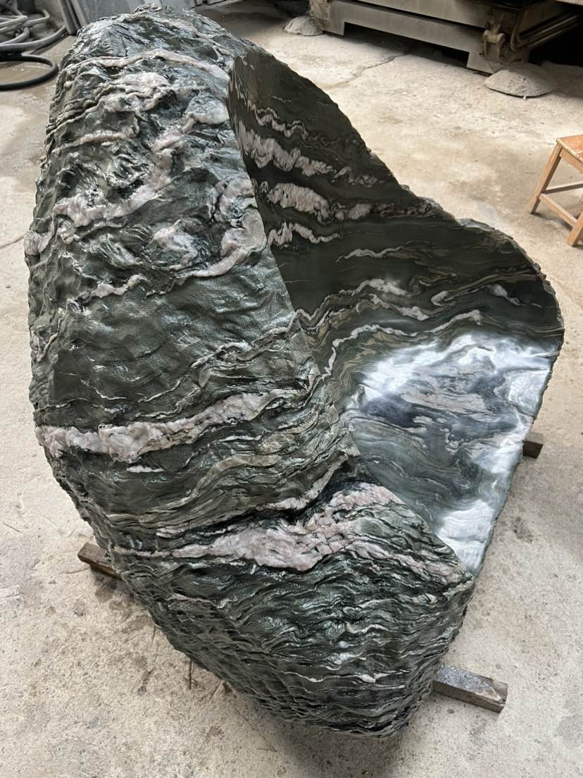 发布信息: 九龙玉整石座凳,绿底云纹如山水画卷,随形挖凿的坐面,糙石肌理配柔滑触感,往院里一放,坐下来就是“把山水揣进日常”~
