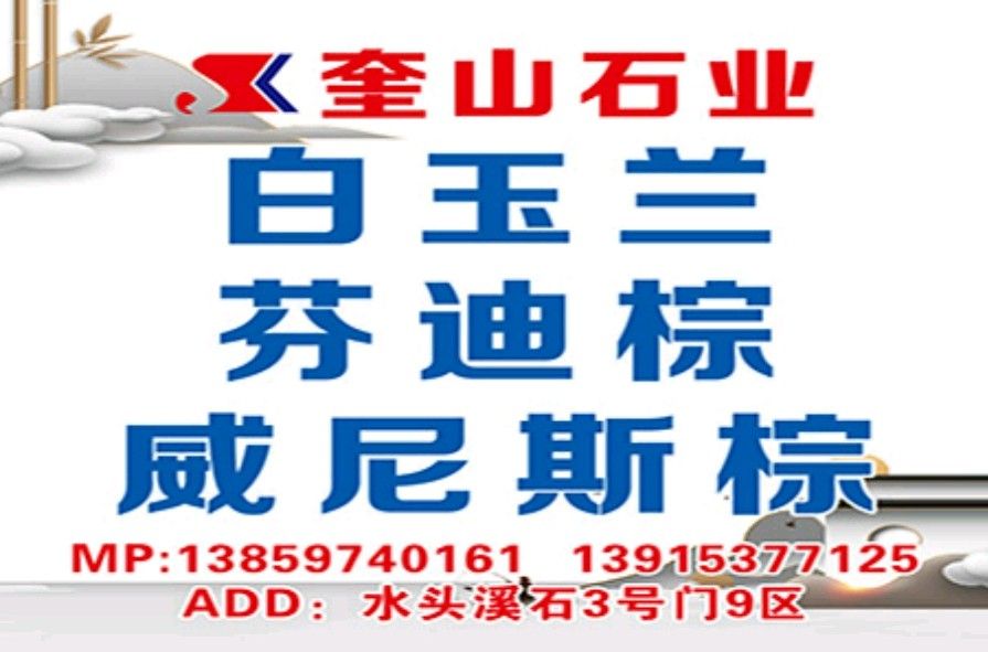 发布信息: 奎山石业(大理石专场)13859740161吴 13915377125张 专业大理石生产及销售近20年,坐落于世界石都福建泉州南安水头,是一家集矿山开采、进出口大理石及花岗岩精深加工、销售、设计、工程服务于一体的中大型石材企业; 主营:玛雅灰(云多拉灰、古堡灰、爱琴海灰、土耳其灰、科比灰)、白玉兰、威尼斯棕(印象威尼斯、幻影棕、星河灰)、芬迪棕(潘多拉棕、彼得棕)、古驰黑、古奇黑、宇宙黑、威尼斯黑、宝格丽绿、马里亚纳灰等;门店一:溪石3号门9区奎山石业;门店二:东升3号门D2奎山明泓白玉兰专场;产品销往国内各大城市、中东、欧美及东南亚等国家及地区,为各类工程工装、酒店别墅 家装提供一站式全方位服务,获得地产商、设计师及居家用户众多好评;奎山石业真诚希望您的光临与合作!