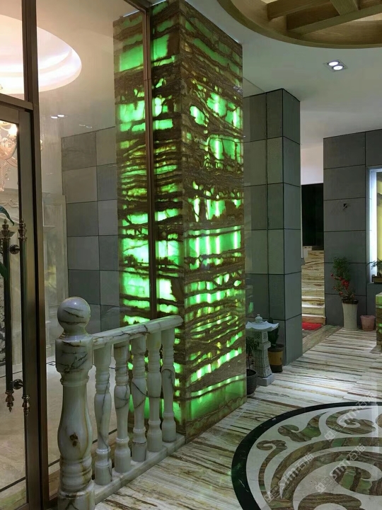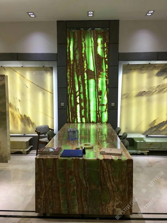 展厅横纹、竖纹透光效果,地面水刀拼花,桌面全方位展示