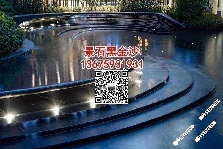 印度黑金沙花岗岩水池水景工程水池幕墙干挂背景墙定制