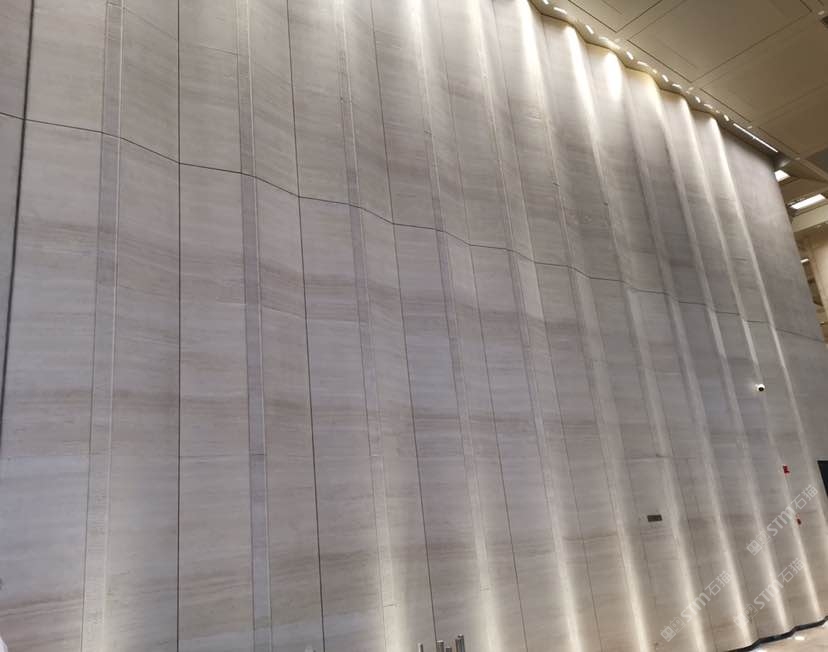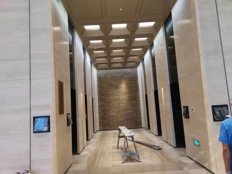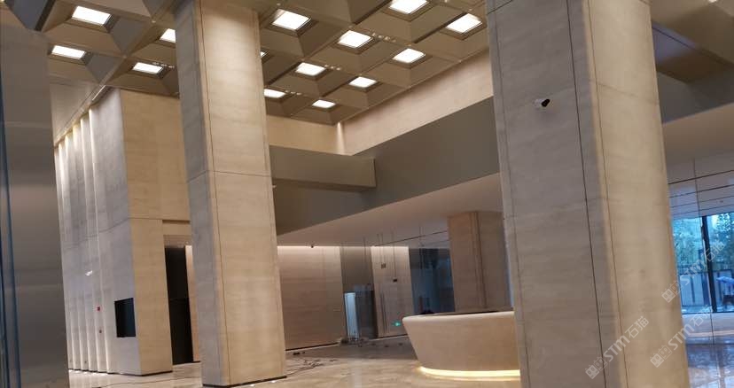 北京金嘉大厦,大堂墙面意大利罗马洞石!