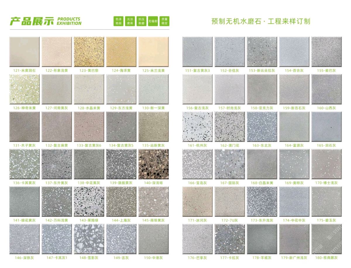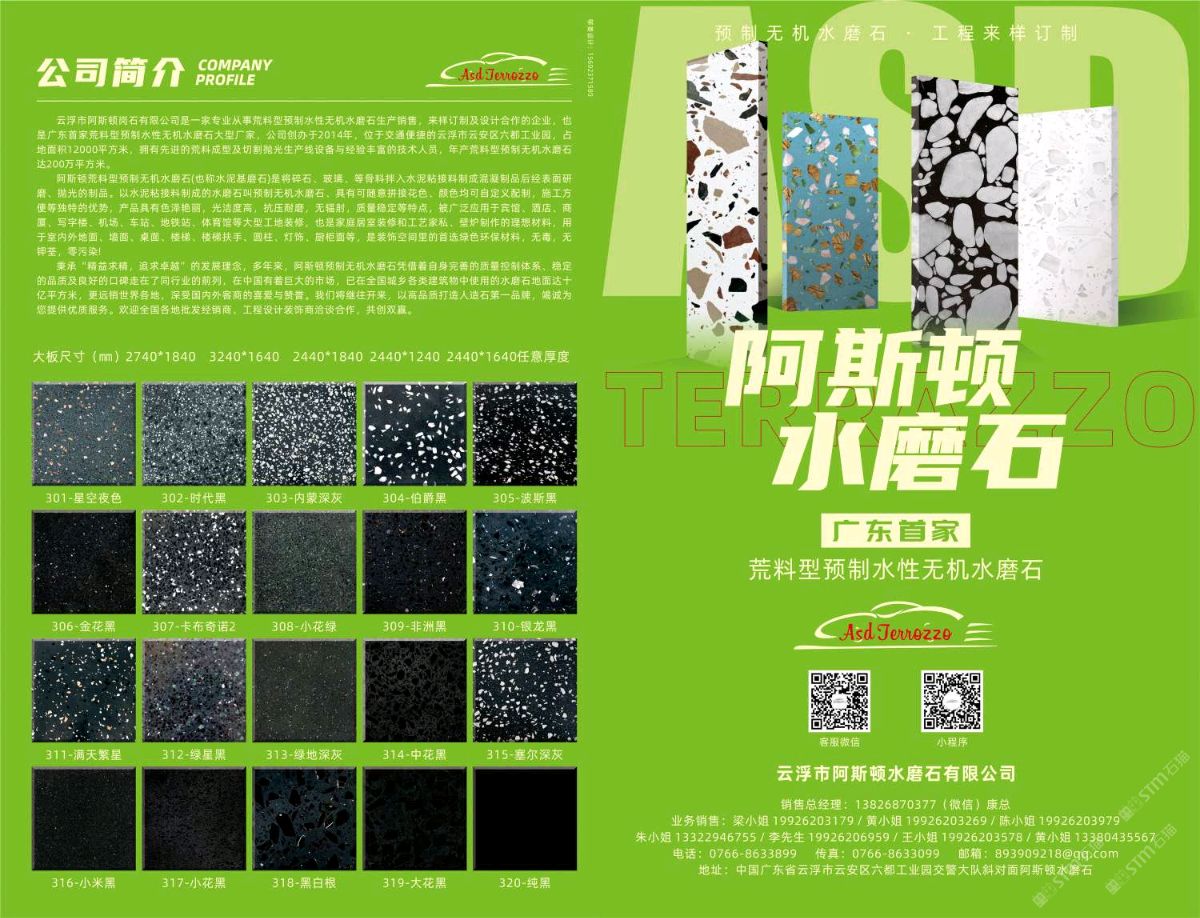发布信息: 阿斯顿水磨石大量现货库存、款式达400多种,单款现货超1000平方 满足急单,也可来样订制/设计,合作共赢!!
