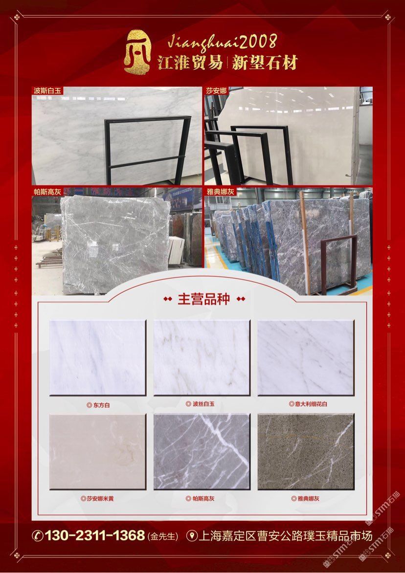 江淮贸易 联系人:金先生    130****1368 查看 130****1368 查看 主营范围: 大板批发、大理石加工、异型加工、荒料、石材工艺品、 企业地址:上海上海嘉定区曹安公路璞玉精品市场