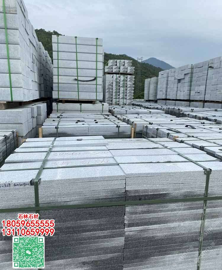福建G623芝麻白石材火烧面工程板地铺石福建白麻