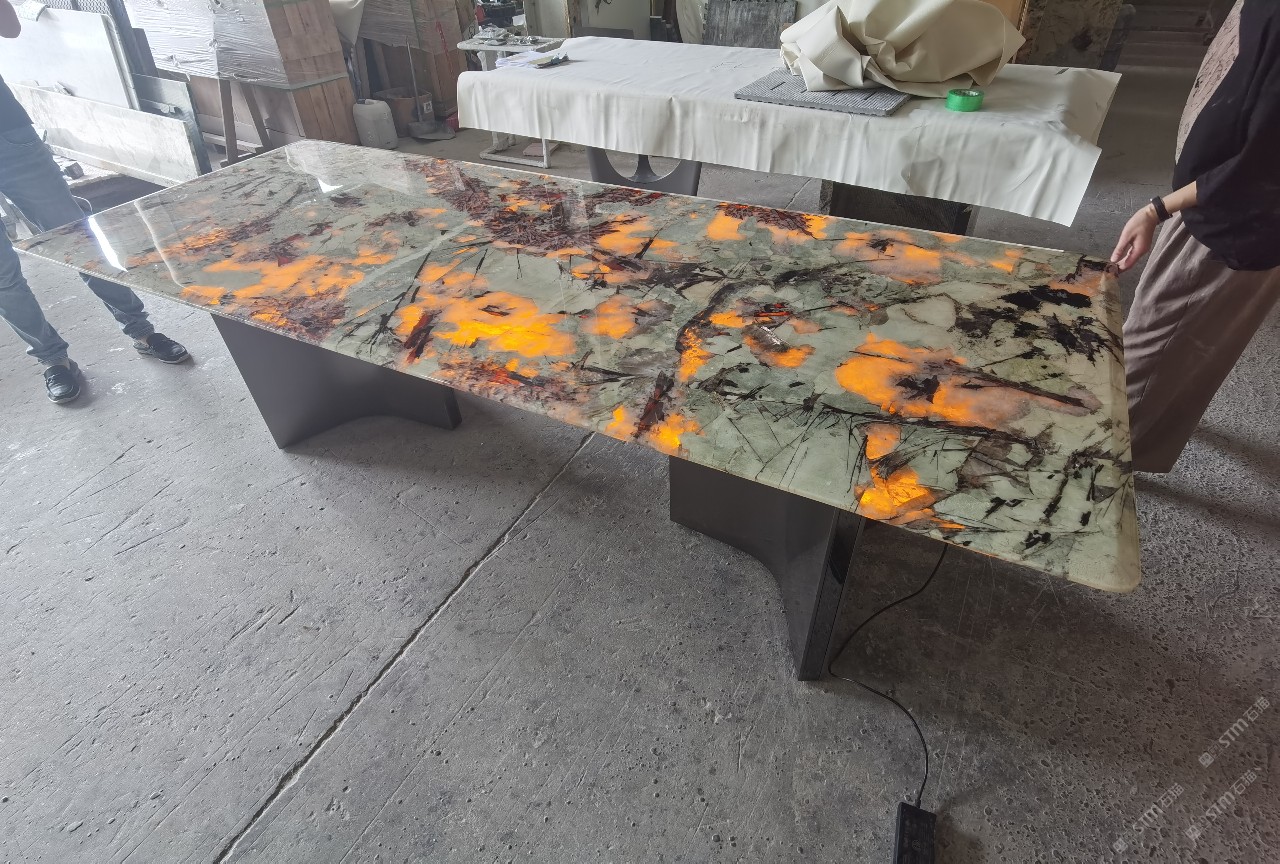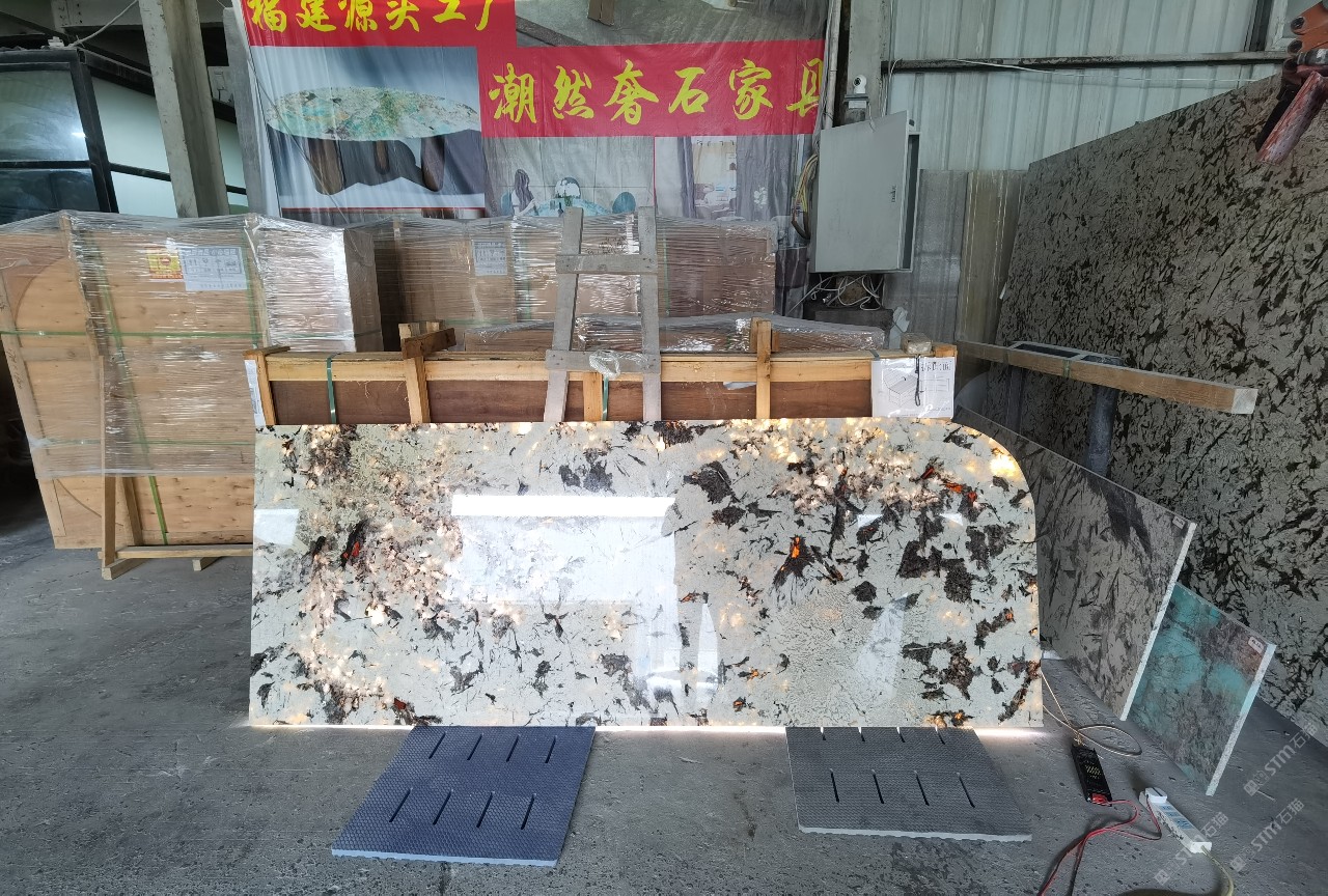 奢石家具厂镜面封釉工艺源头厂家高端定制透光奢石