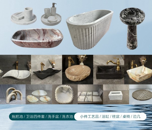 系列石材浴缸、洗手盆、柱盆、拖把池、淋浴板、洗衣池