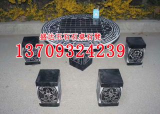 芝麻黑花岗岩雕刻石桌石椅石凳g654石材象棋桌子