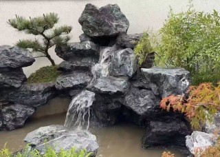 黑山石白石米中式园林景观