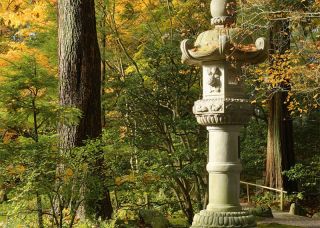 石雕日式仿古石灯笼芝麻白做旧公园石灯
