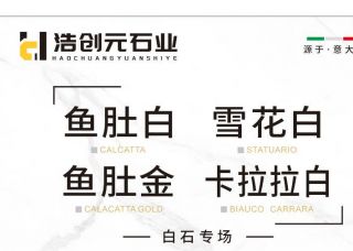 浩创元石业主营产品:鱼肚白,鱼肚白1,卡拉拉白,卡拉拉白1,卡拉拉白(意大利矿),鱼肚金,鱼肚金2,雪花白3,雪花白2,雪花白5,雪花白6,雪花白4,小雪花白(细纹雪花白),鱼肚金(意大利正矿)企业地址:福建泉州南安市水头镇