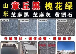 平邑兴诚石材主营产品:章丘黑,章丘黑(荔枝面),黄锈石,芝麻灰(山东),槐花绿,雪花青,邑蒙青,鲁灰,墓碑(日式),外装楼梯板(花岗岩台阶),地铺石(小方块),墓碑半成品,中式石栏杆,墓碑(中式),寺院栏杆企业地址:山东临沂平邑县平邑街道长山石材聚集区兴诚石材