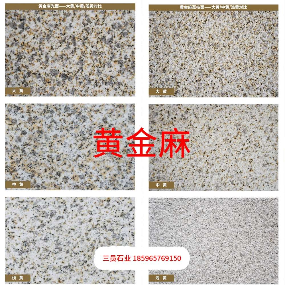水头三员石业,18965769150,随州黄金麻、随州白麻、603芝麻白,654芝麻黑,633芝麻灰,1.6-20公分毛板,光面/火烧面/荔枝面等,自有加工厂,配有专业跟单员、CAD技术员,支持成品加工。欢迎来电咨询